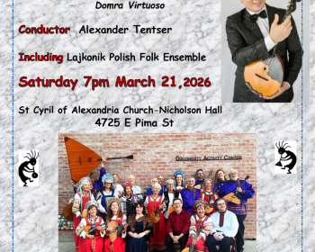 Upcoming Balalaika Shows azbalalaika October 3, 2025 October 3, 2025 Arizona Balalaika Orchestra will be performing Saturday October 11 Patagonia Fall Festival –Gazebo Stage 1-2pm Patagonia Town Park 400 McKeown Ave, Patagonia, AZ https://visitskyislands.com/event/patagonia-fall-festival/ … Continue reading